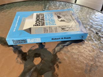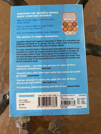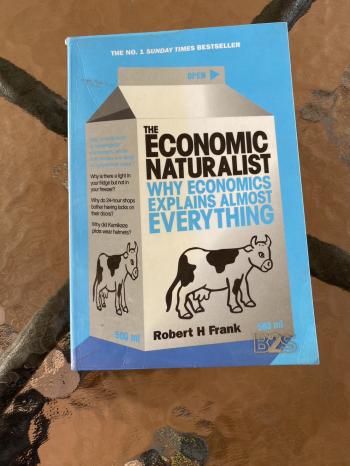 หนังสือTHE ECONOMIC NATURALIST ปกสีฟ้าเนื้อหาเป็นภาษาอังกฤษ สีขาวดำ มีห่อสีใส่หุ้มตัวปกหนังสือ