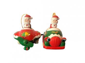 ตุ๊กตาไขลานซานตาคลอส รูปรถไฟและเครื่องบิน กดลงที่หัวซานต้าไขลานจะทำงานทันที เหมาะสำหรับเด็ก 6 เดือนขึ้นไป หรือจะตั้งโขว์ สะสม ก็ได้ ในเซตมี 2 ตัว